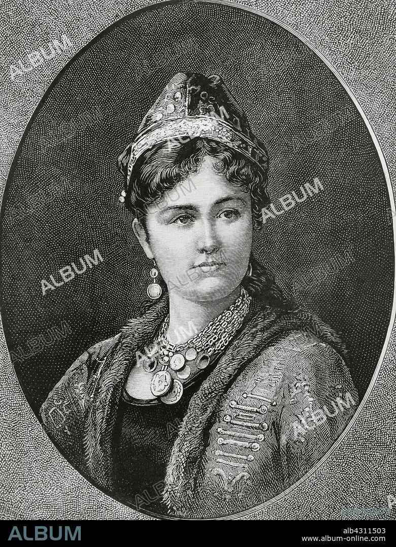 Caption: Emina Ilhamy (1858-1931), also Amina Ilhami. Egyptian princess and a member of the Muhammad Ali Dynasty. Khedive consort of Egypt (25 June 1879 to 7 January 1892), as the wife of Tewfik Pasha (1852-1892). Portrait. Engraving. La Ilustración Española y Americana (The Spanish and American Illustration), 1883.