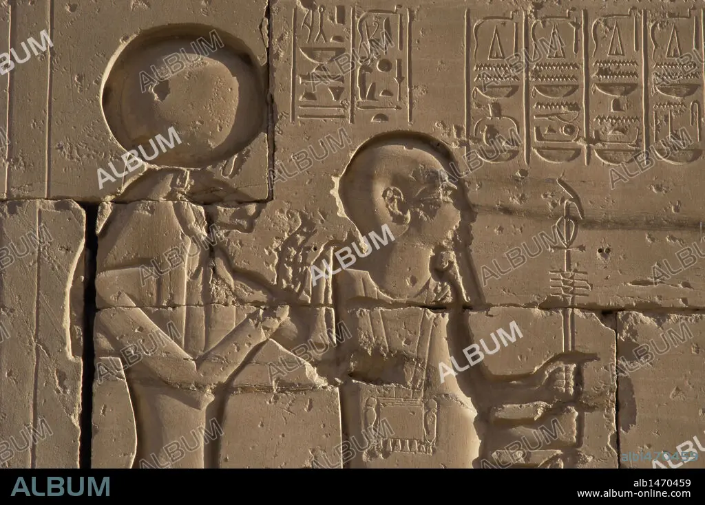 Caption: Relief depicting the goddess Tefnut (goddess lioness) and the god Ptah. Detail. Ramesseum. Nineteen dynasty. New Kingdom. Necropolis of Thebes. Valley of the kings. Egypt.