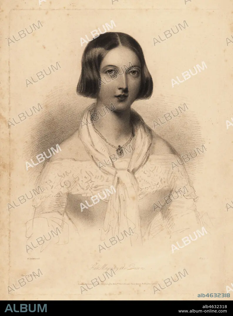 Caption: Young Queen Victoria, early 20s. Steel stipple engraving by William Henry Mote after an illustration by William Drummond from Charles Heaths English Pearls, or Portraits for the Boudoir, Tilt and Bogue, London, 1843.
