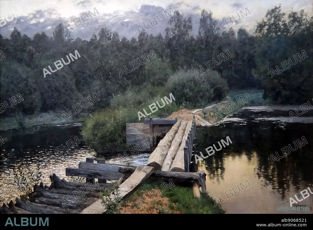 Caption: Painting titled 'By The Whirlpool' by Isaac Levitan. Isaac Ilyich Levitan (1860-1900) a Classical Russian landscape painter.