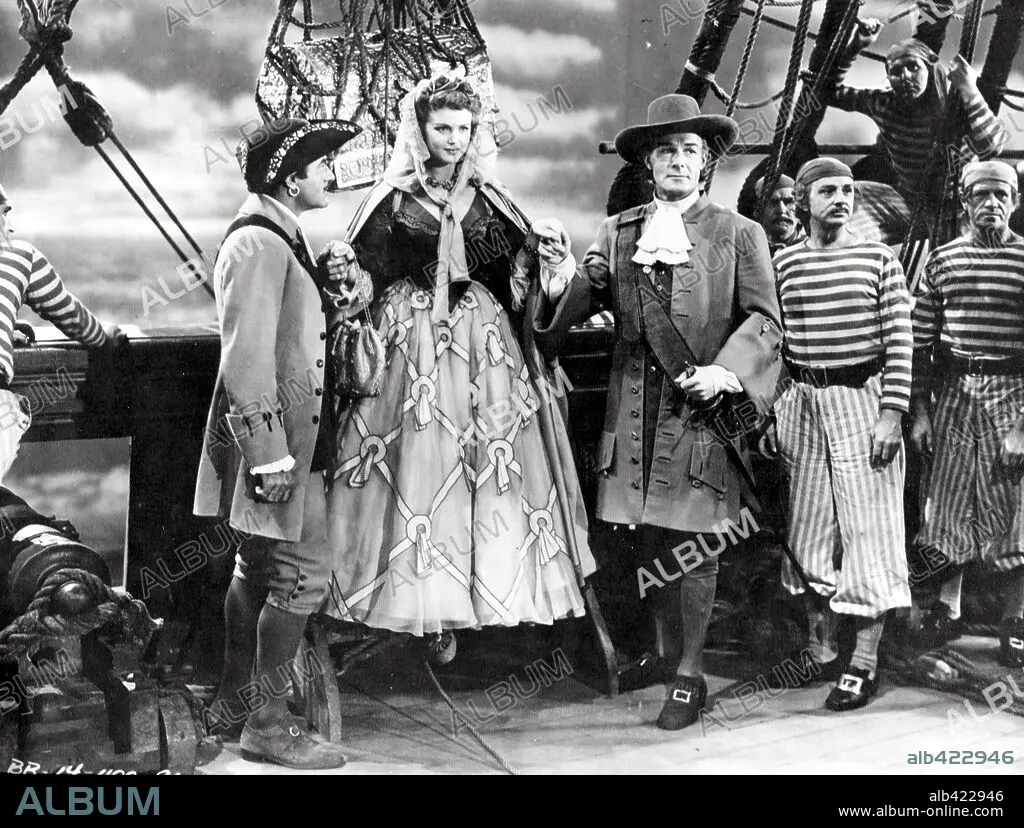 BARBARA BRITTON, GILBERT ROLAND, JOHN QUALEN and RANDOLPH SCOTT in CAPTAIN KIDD, 1945, directed by ROWLAND V. LEE. Copyright UNITED ARTISTS.