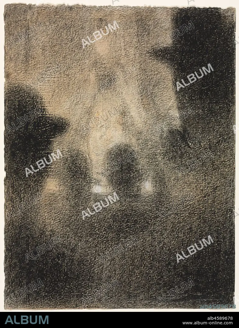 Caption: Café-concert, 1887-1888. Café-concerts were popular places of entertainment for the middle classes in Paris during the late 1800s and usually featured singers or other forms of vaudeville entertainers. Eight drawings by Seurat showing café-concerts exist, some depicting known establishments. Cleveland's drawing has an innovative viewpoint, in which we peer through the bowler hats of male viewers listening to a female singer on stage. Seurat typically used a black crayon manufactured by the Conté company, and its waxy quality allowed him to exploit the texture of paper to startling effect.