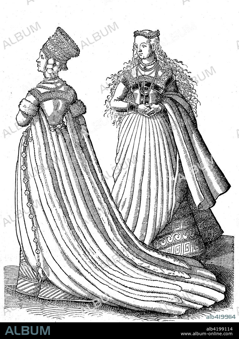 Bride in the wedding dress in Nuremberg in the 16th century, costume picture, digital improved reproduction from a publication of the year 1880.