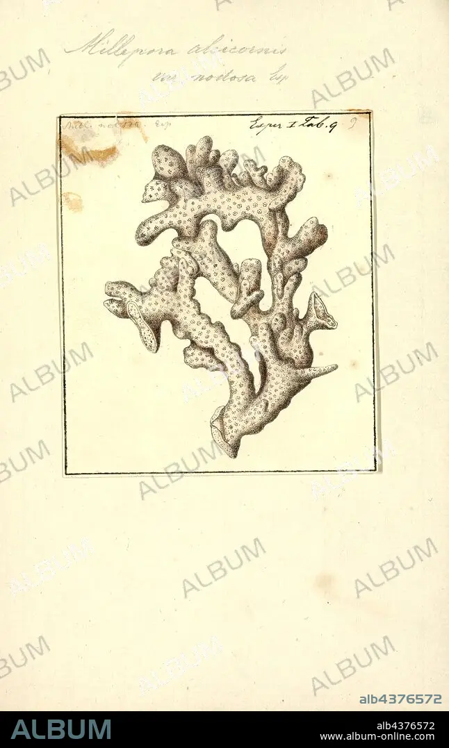 Caption: Millepora alcicornis, Print, Millepora alcicornis, or sea ginger, is a species of colonial fire coral with a calcareous skeleton. It is found on shallow water coral reefs in the tropical west Atlantic Ocean. It shows a variety of different morphologies depending on its location. It feeds on plankton and derives part of its energy requirements from microalgae found within its tissues. It is an important member of the reef building community and subject to the same threats as other corals. It can cause painful stings to unwary divers.