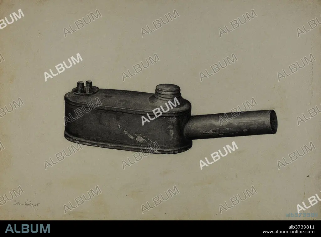 HELEN HOBART. Bunker Lamp. Dated: c. 1940. Dimensions: overall: 22.8 x 33.3 cm (9 x 13 1/8 in.) Original IAD Object: 5 9/16" long; 1 7/8" high; 2 11/16" wide. Medium: graphite on paperboard.