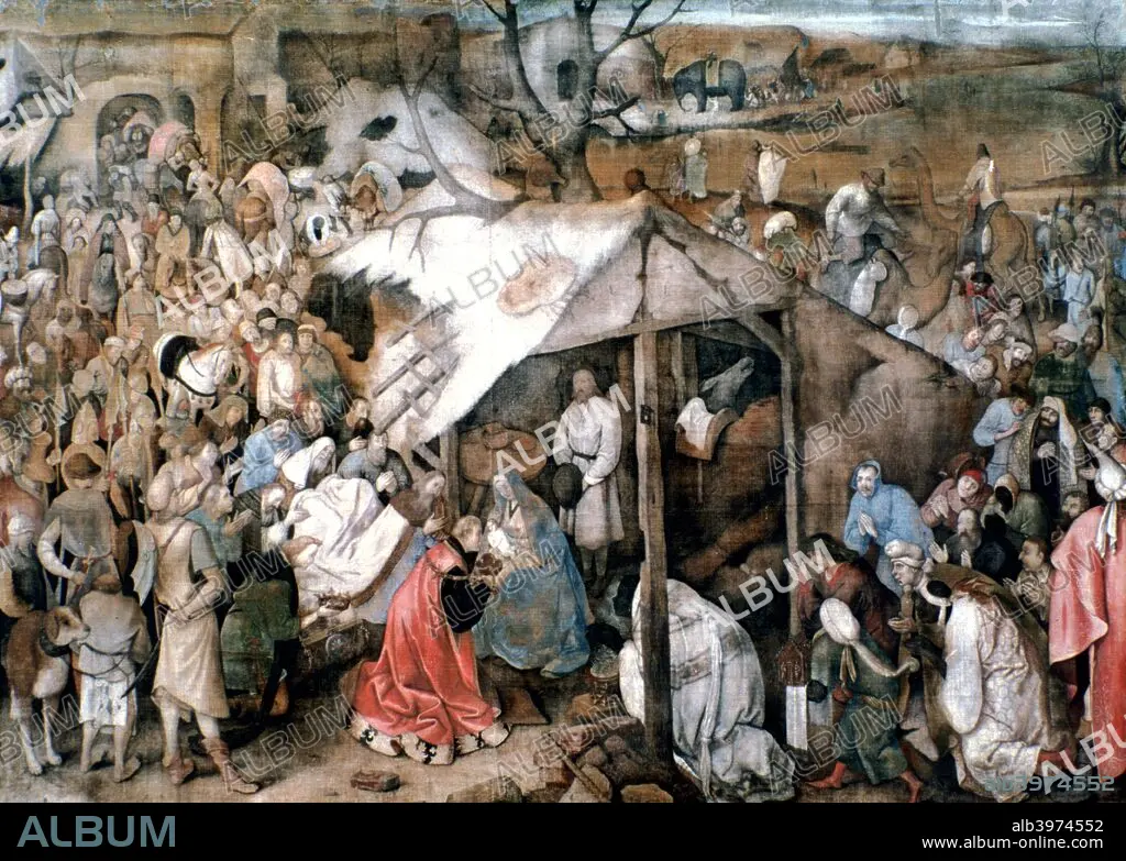 'The Adoration of the Kings', c1556-1562. The Adoration of Three Kings presenting their gifts are treated as caricatures whilst the Virgin is not idealised. From the collection of the Musees Royaux des Beaux Arts de Belgique, Brussels, Belgium.