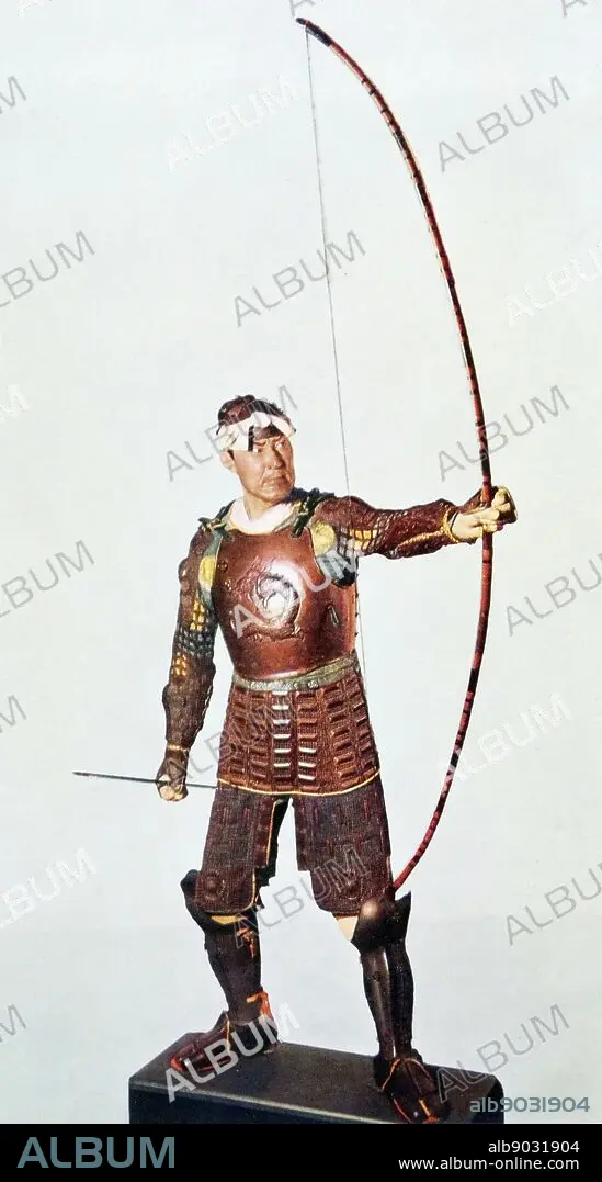 Model of a Japanese Samurai Warrior in full armour holding a Bow