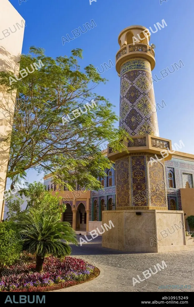 Caption: The Katara Mosque in the Katara Cultural Centre of Doha, church, church tower, wealth, Orient, Muslim, culture, cultural village, sacred building, faith, pray, prayer house, oriental, oil, wealth, travel, holiday, tourism, architecture, building, tradition, religion, world religion, history, Muslim, Arabic, cultural history, Islam, Doha, Qatar, Asia