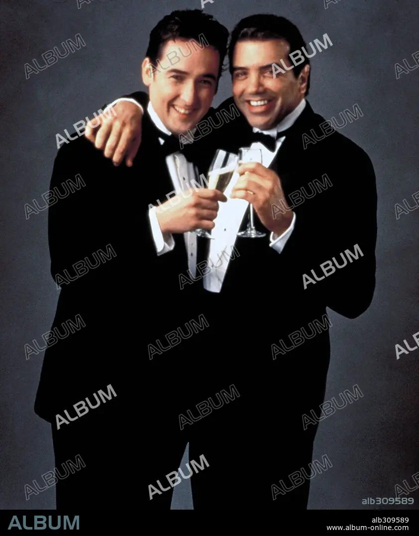 CHAZZ PALMINTERI and JOHN CUSACK in BULLETS OVER BROADWAY, 1994, directed by WOODY ALLEN. Copyright MIRAMAX FILMS/SWEETLAND FILMS.