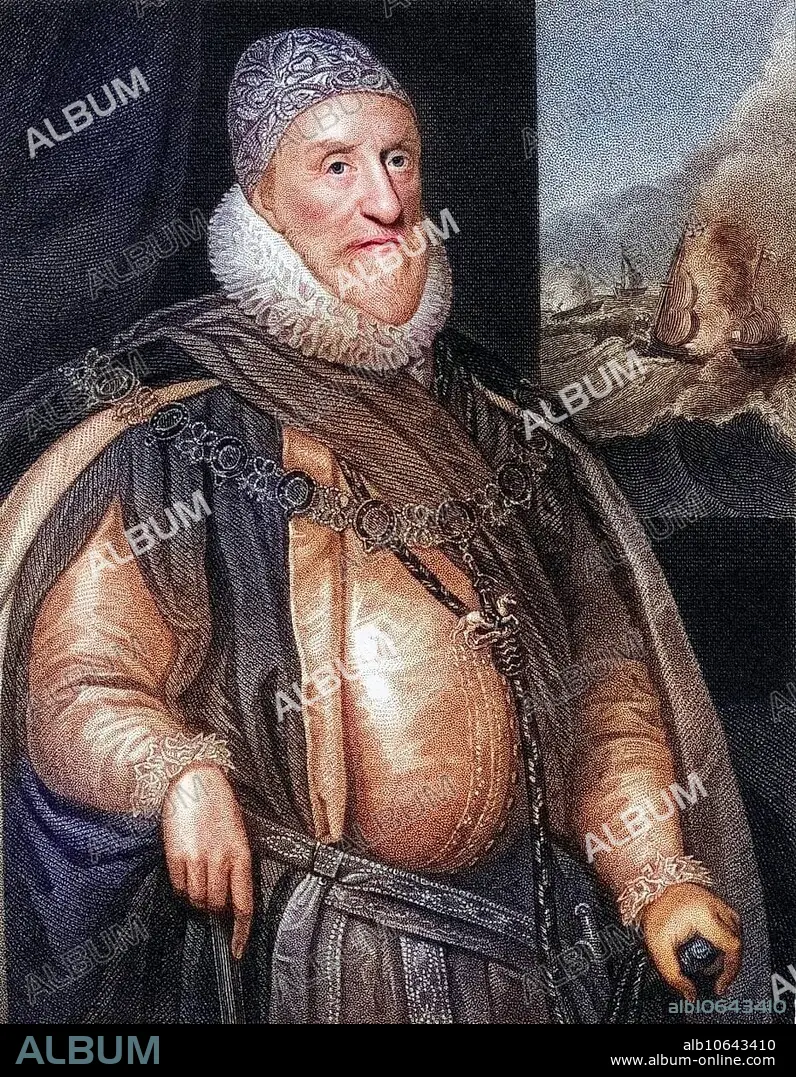 Caption: Charles Howard, 1st Earl of Nottingham, alias 2nd Baron Howard of Effingham, 1536-1624, English Lord High Admiral. From the book Lodge's British Portraits published in London 1823.l, Historic, digitally restored reproduction from a 19th century original, Record date not stated