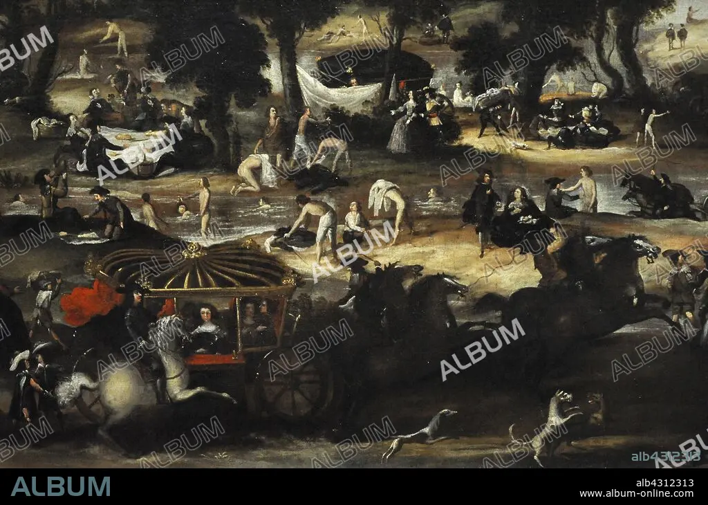 Caption: Felix Castello (1595-1651). Spanish painter. Bathing in the Manzanares in the Countryside at Molino Quemado, ca.1634-1637. Detail. History Museum. Madrid. Spain.