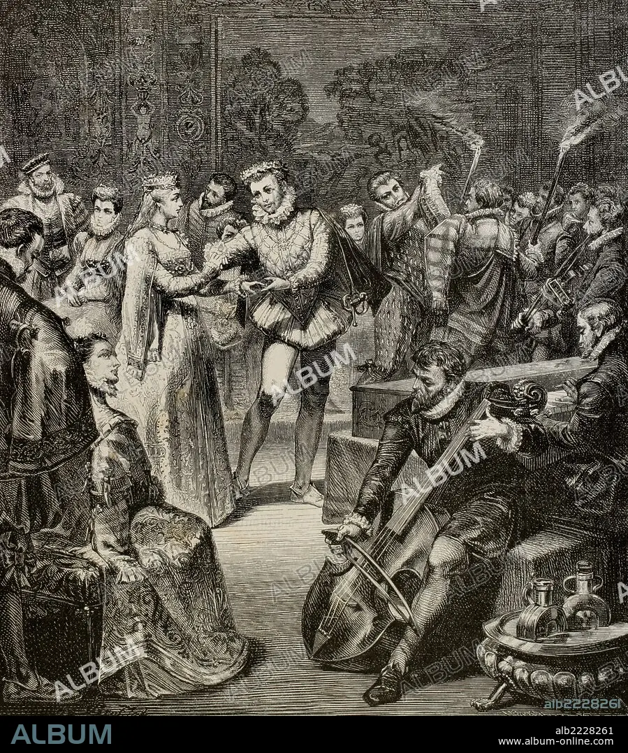Leopold I (1640-1705). Holy Roman Emperor. Bridal Party of Leopold I and Margaret Theresa of Spain. Engraving by H. Kaefeberg in Germania, 1882.