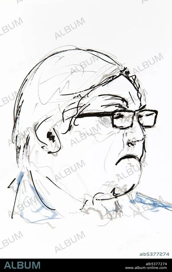 Caption: Frank Walter Steinmeier, SPD, Social Democratic Party of Germany, portrait, drawing, artist Gerhard Kraus, Kriftel, Germany, Europe