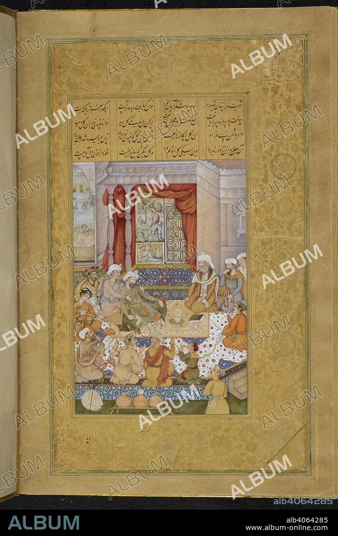 The two contending physicians (Miskina). Khamsa. ('Five Poems'). India, 1595 - 1610. Opaque watercolour. Mughal style. Mughal/Akbar style. Source: Or. 12208 f.23v.