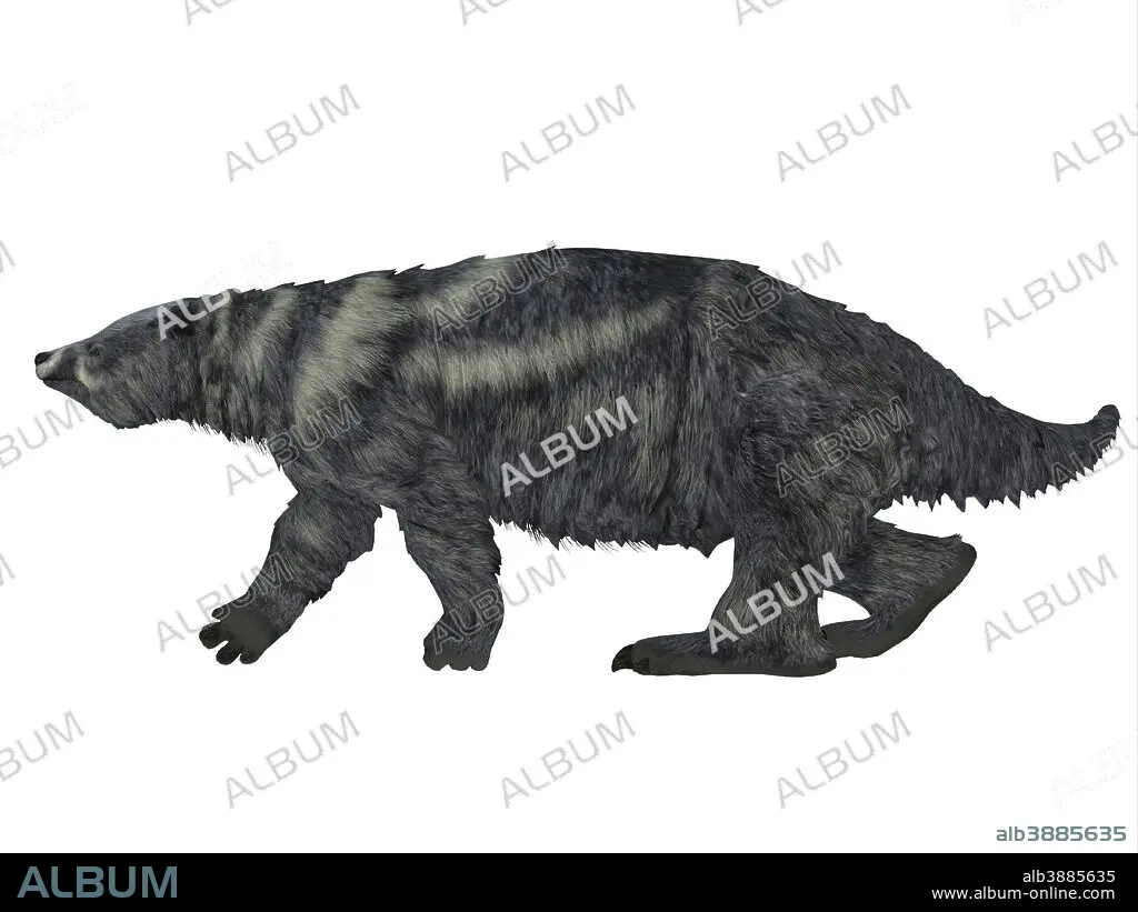 Caption: Eremotherium ground sloth, side view. Eremotherium was one of the largest ground sloths that lived in North and South America in the Pleistocene Period.
