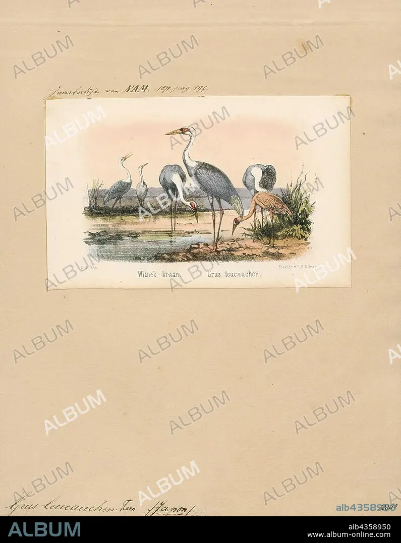 Grus vipio, Print, The white-naped crane (Antigone vipio) is a bird of the crane family. It is a large bird, 112–125 cm (44–49 in) long, approximately 130 cm (4.3 ft) tall and weighing about 5.6 kg (12 lb) with pinkish legs, grey and white striped neck, and a red face patch., 1871