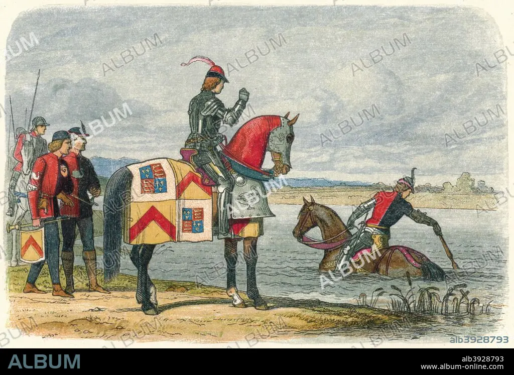 Caption: 'Buckingham finds the Severn impassable', 1864. Henry Stafford, 2nd Duke of Buckingham, (1454 -1483)) finds the River Severn swollen after heavy rain, blocking his way to join a rebellion against Richard III of England, 1483. From A Chronicle of England B.C. 55 - A.D. 1485 by James E. Doyle. [Longman, Green, Longman, Roberts & Green, London, 1864]