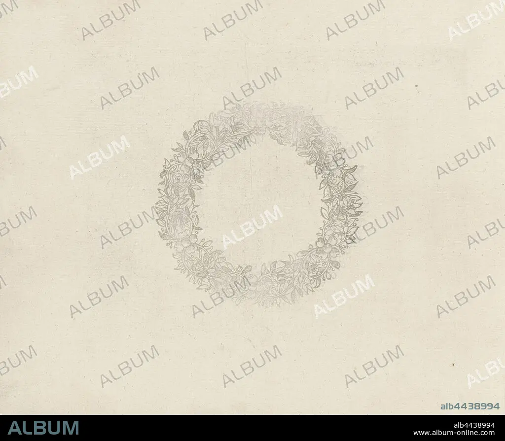 Ornamental flower wreath, Thesaurus sacrarum historiaru [m] veteris testame [n] ti, elega [n] tissimis imaginibus expressu [m] excelle [n] tissimoru [m] in hac arte viroru [m] opera: now [n] c primu [m] in luce [m] editus (series title), Antwerp, 1579, paper, counterproof, d 135 mm