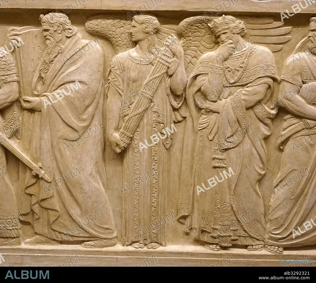 Title: Relief depicting Hebrew prophet Moses. Moses is seen the figure of Austerity. King Solomon seen hand supporting head.