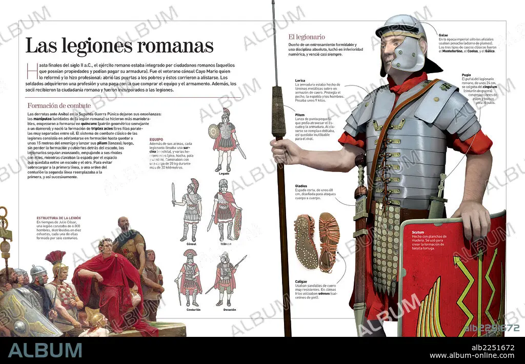 Infographic about the improvements in the Roman army, the legionaries, once the consul Caius Marius decided to restructure it and turn it into a professional institution. (753 BC – 476).