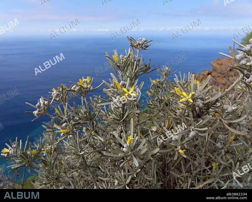 Caption: Dusty Zeiland (Neochamaelea pulverulenta), Valle Gran Rey, La Gomera, Canary Islands, Spain, Europe