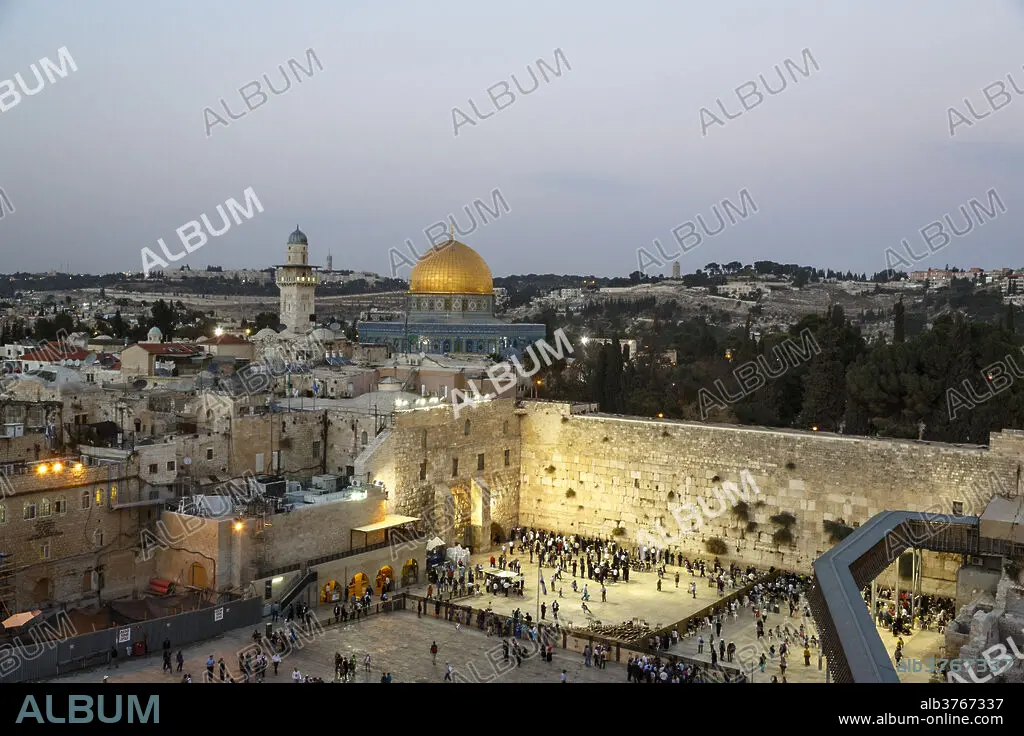 View over the Western Wall (Wailing Wall) and the Dome of the Rock Mosque, UNESCO World Heritage Site, Jerusalem, Israel, Middle East