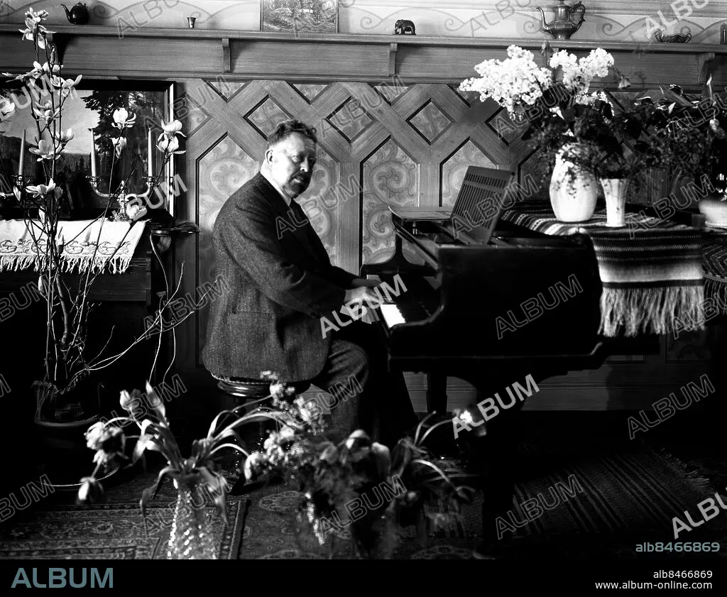 ARKIV 1924 . Tonsättaren och musikkritikern i Dagens Nyheter Wilhelm Peterson-Berger (1867-1942) vid pianot i sitt hem på Frösön.. Swedish composer and music reviewer Wilhelm Peterson-Berger (1867-1942) at his home at Frösön.. Foto: TT / Kod 1900