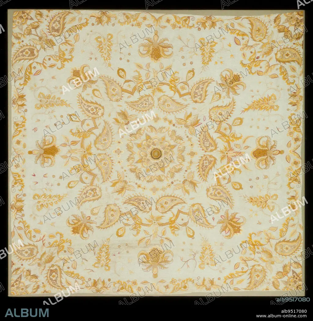 Coverlet, c. 1700, 61 x 61 in. (154.94 x 154.94 cm), Linen, silk; embroidery, including satin stitch, long and short stitch, brick stitch, couched cord, and french knots, India (probably) for the English market, 17th-18th century, Early homes consisted of a single large room in which all household activities took place. The first bedrooms were little more than a small closet where the lord of the 'manor' could go to escape the hubbub of domestic life and to conduct business in private. As landholders became more prosperous houses grew larger, and the number and size of bedrooms increased accordingly.
