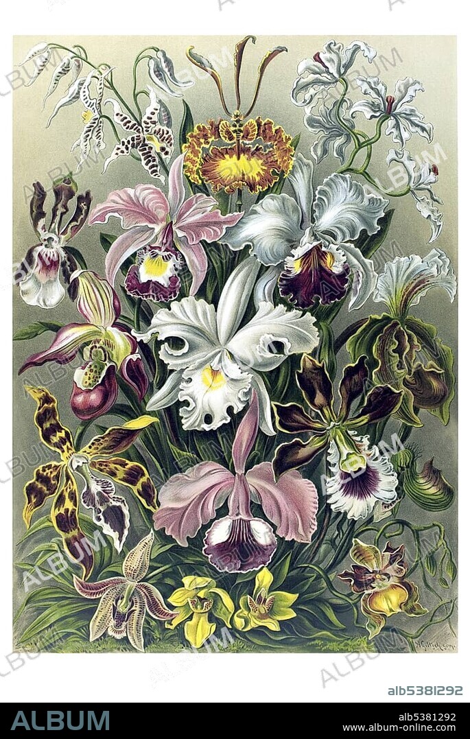 Caption: Historic illustration, Orchid (Orchideae), tablet 74, Ernst Haeckel, Kunstformen der Natur, "Artforms of Nature"