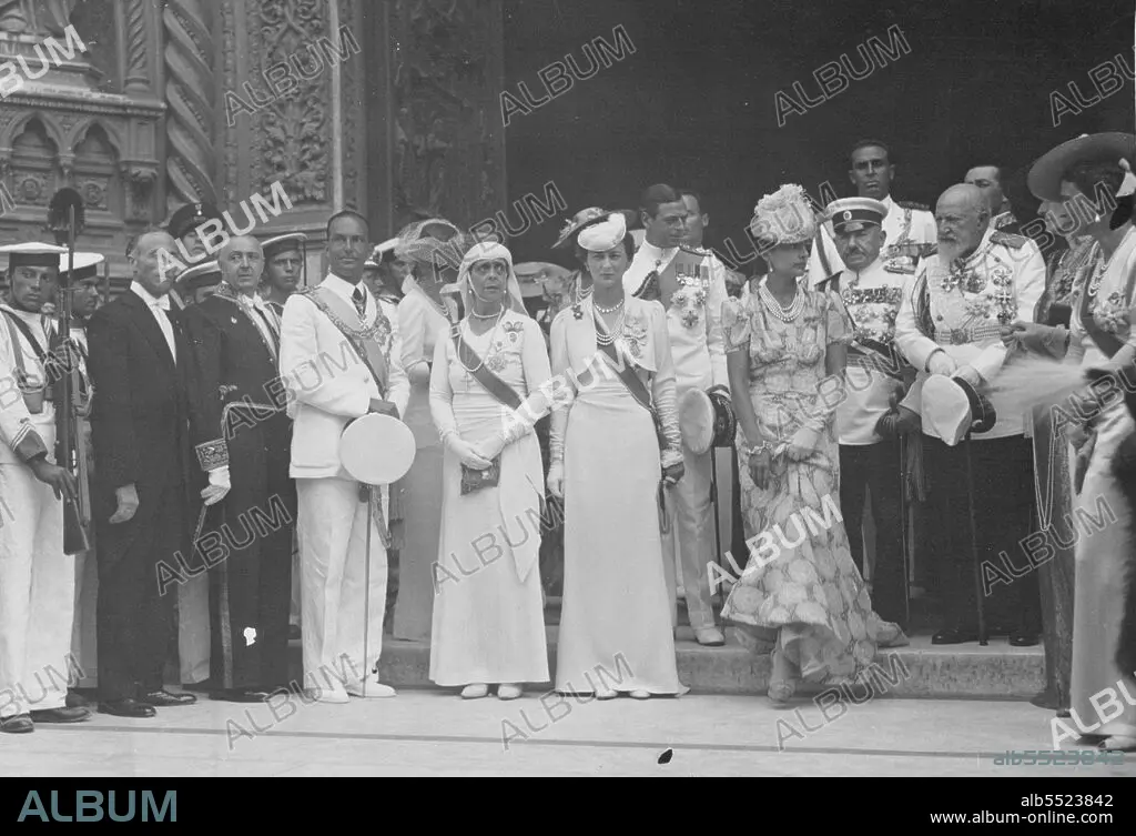 Caption: Wedding of the Duke of Spoleto with Princess Irene of Greece.Duke and Duchess of Kent (center) to left Crown Prince Umberto di Savoia - to right King Ferdinand of Bulgaris (without hat). July 1, 1939. (Photo by Carlo Carletti Exclusive News Photo Service).