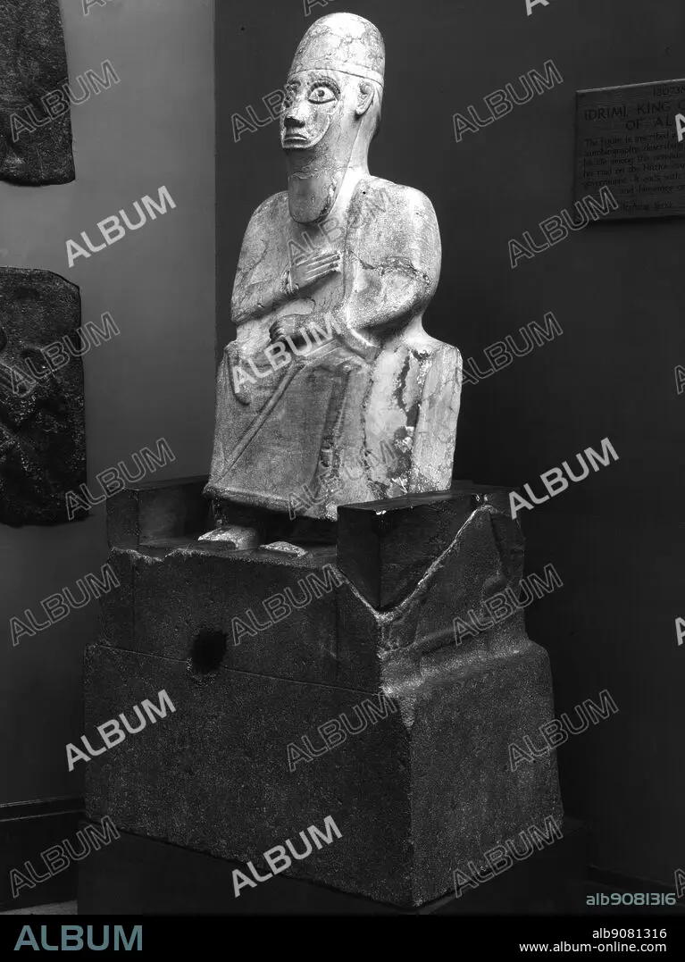 Idrimi, King of Alalah - statue of Ydrimi -. Idrimi was the king of Alalakh in the first half of the 15th century BC -. Alalakh, or Alalah, is the name of an ancient city and its associated city-state of the Amuq River valley, located in the Hatay region of southern Turkey near the city of Antakya (ancient Antioch), and now represented by an extensive city-mound known as Tell Atchana -. It is probable that in the first half of the 15th century, Idrimi, son of the king of Aleppo may have fled his city for Emar, traveled to Alalakh, gained control of the city, and been recognized as a vassal by Barattarna. The inscription records Idrimi's vicissitudes: after his family had been forced to flee to Emar, he left them and joined the "Hapiru people" in "Ammija in the land of Canaan", where the Hapiru recognized him as the "son of their overlord" and "gathered around him"; after living among them for seven years, he led his Habiru warriors in a successful attack by sea on Alalakh, where he became king. ©TopFoto