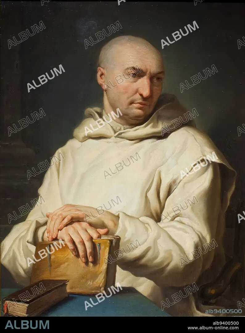 Caption: Portrait of a Carthusian Monk, c. 1715, Jean Restout II, French, 16921758, 39 x 28 in. (99.06 x 71.12 cm) (canvas), Oil on canvas, France, 18th century, Jean Restout II specialized in religious subjects, producing work that found great favor with Frances monasteries. This vivid image of a monk is among several early paintings by Restout depicting members of the Carthusian order and its founder, Saint Bruno. The reclusive Carthusians, recognized by their shaved heads and hooded white clothing, lived in solitude and poverty, copying books and contemplating the contents. This mans identity is unknown. The delicate modulation of light across his face reveals his wrinkled brow and five oclock shadow. Restouts skillful modeling of the hands and white habit makes them appear tangible.