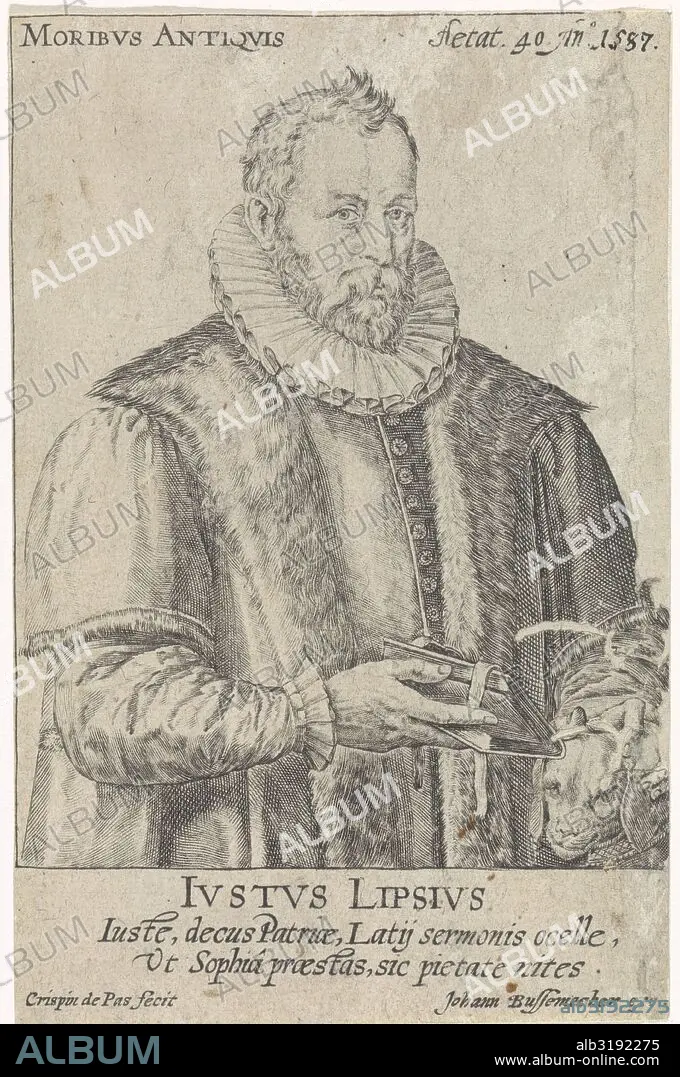 Portrait of Justus Lipsius, Crispijn van de Passe (I), Hendrick Goltzius, Johann Bussemacher, 1587.