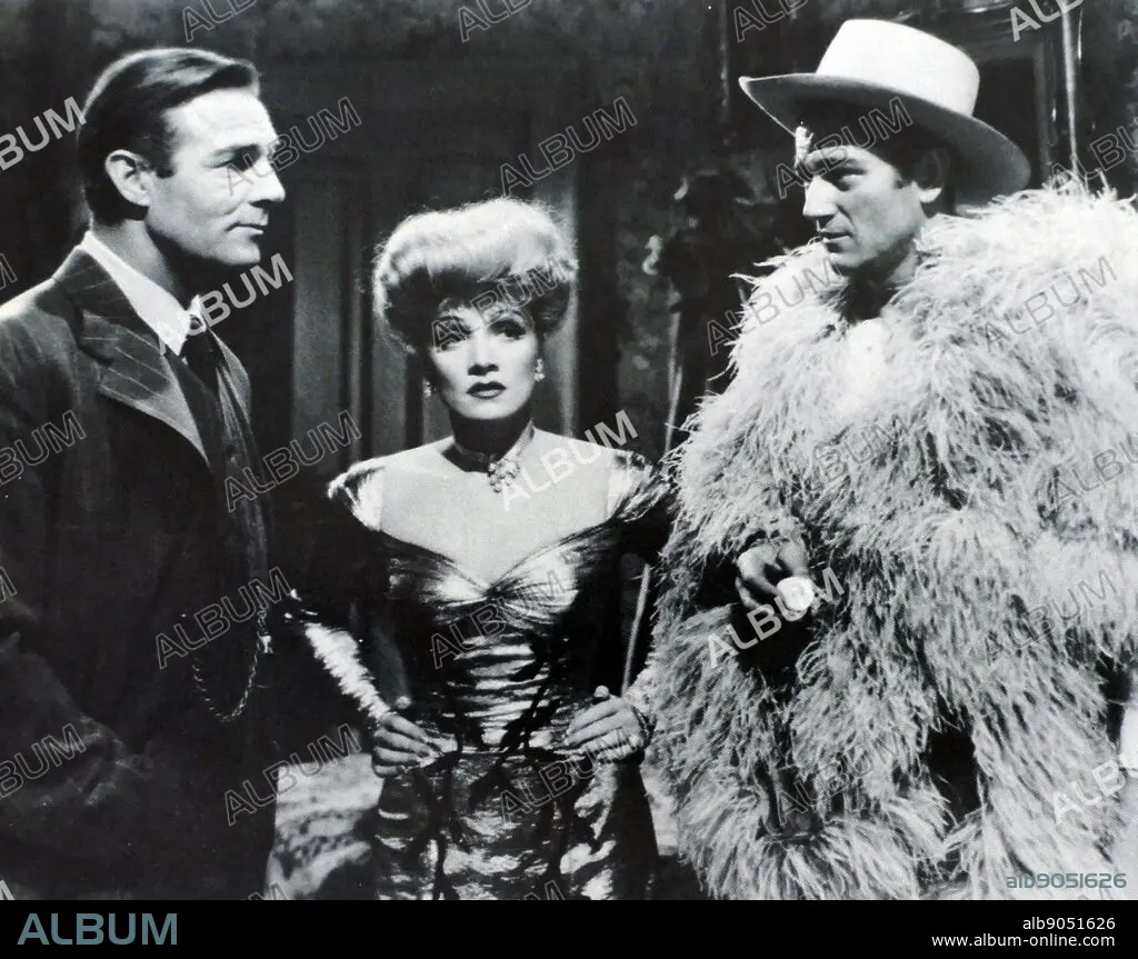 Caption: The Spoilers is a 1942 American Western film directed by Ray Enright. The movie is set in Nome, Alaska during the Nome Gold Rush, with Marlene Dietrich as Cherry Malotte, Randolph Scott as Alexander McNamara, and John Wayne as Roy Glennister, and culminates in a spectacular saloon fistfight between McNamara and Glennister.