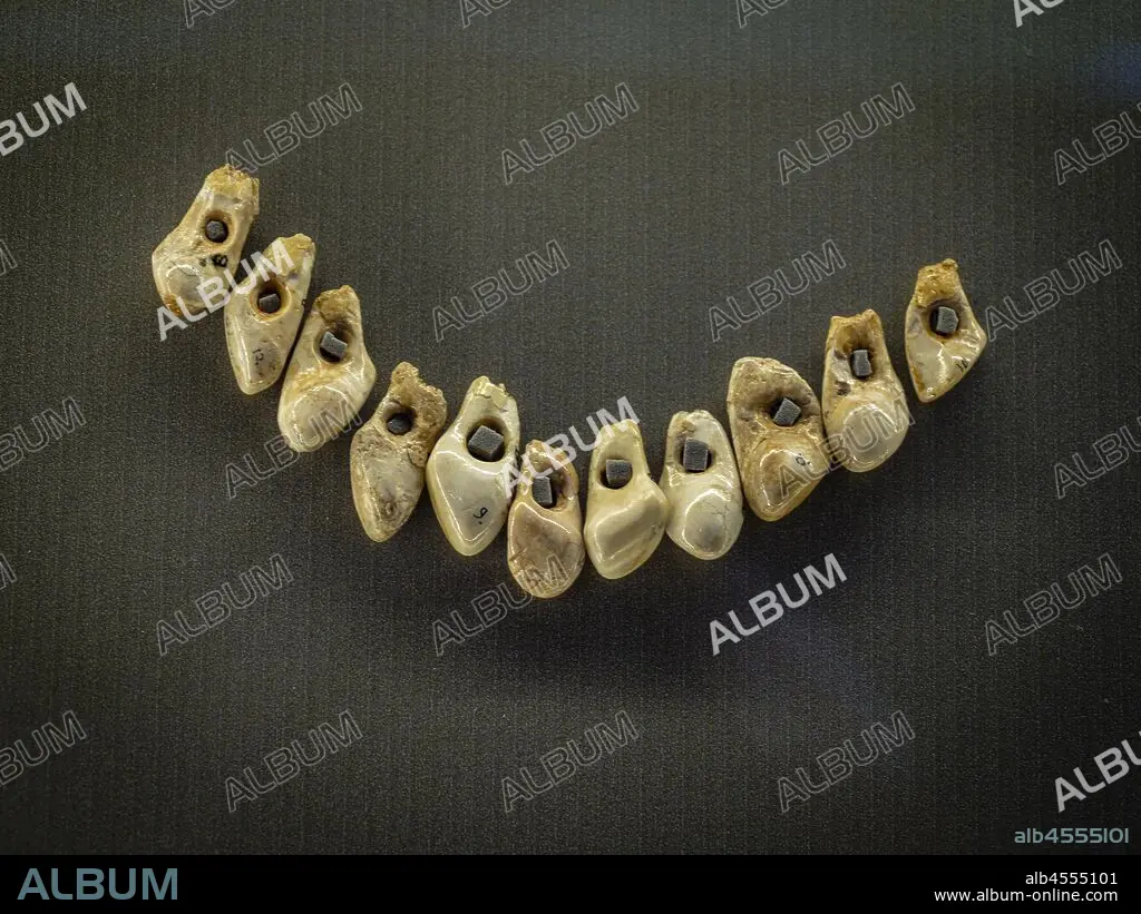 Automatic translation: perforated teeth, , cave of Bolinkoba, Abadiño, Arkeologi Museoa, archaeological museum, Bilbao, Bizkaia, Pais Vasco, Spain