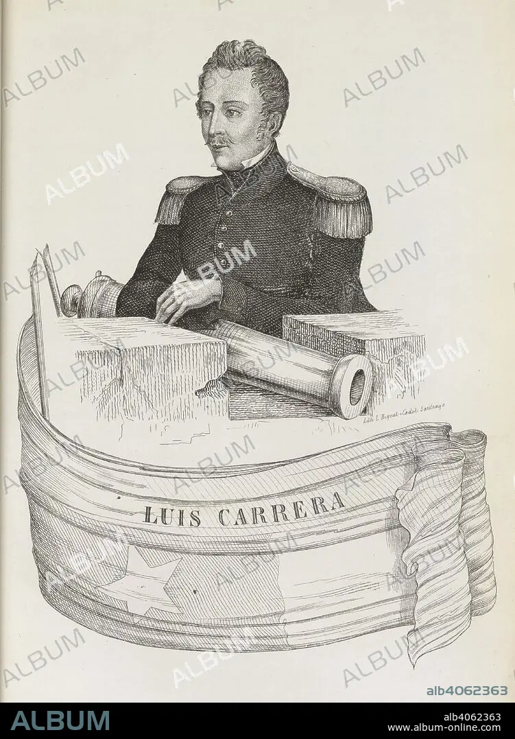 Caption: Luis Carrera. El Ostracismo de los Carreras, los Jenerales J. M. Santiago, 1857. Luis Carrera (1791-1818). He was a Chilean military officer who fought in the Chilean War of Independence. Portrait. Image taken from El Ostracismo de los Carreras, los Jenerales J. M., i J. J., i el Colonel L. Carrera. Episodio de la Independencia de Sud-America. Originally published/produced in Santiago, 1857. . Source: 9781.d.3, 165.