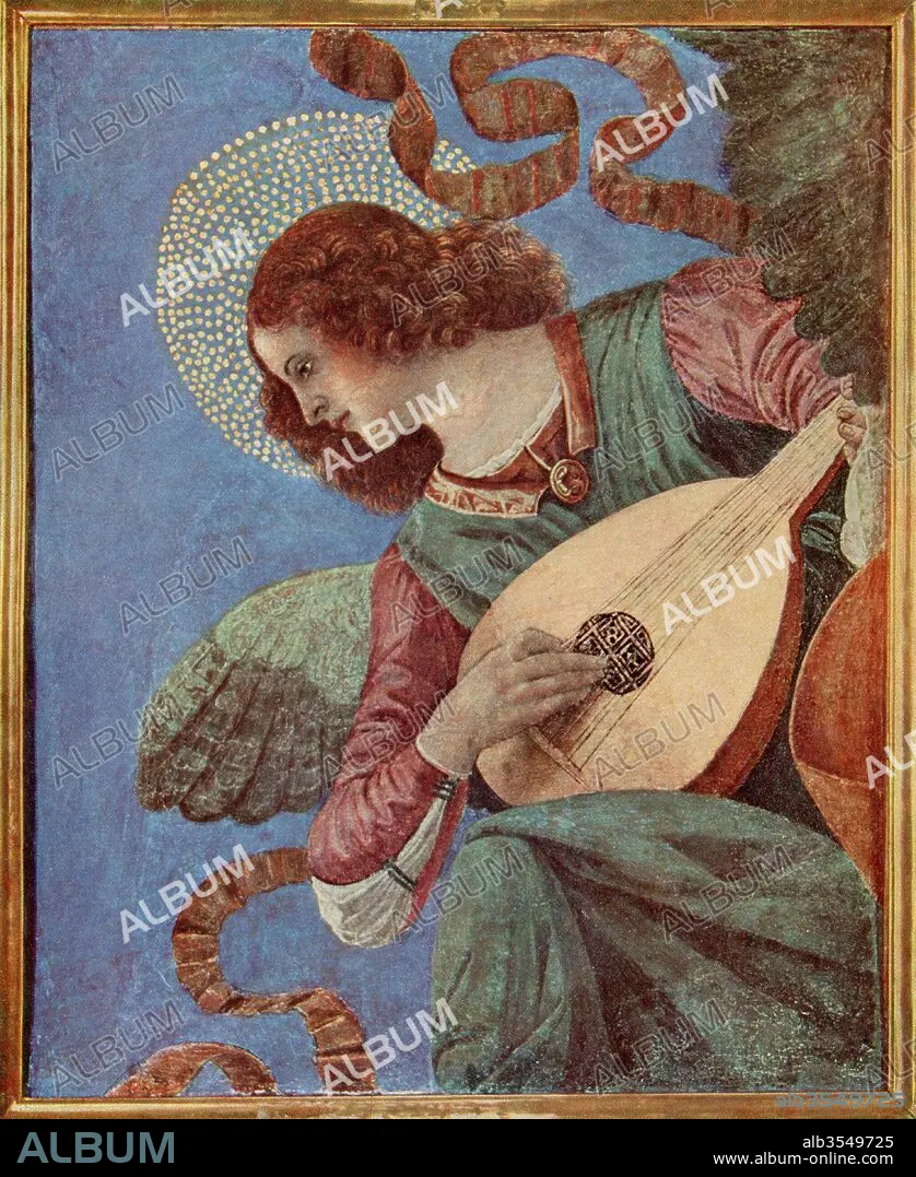 Musician Angel, after the fresco paintings of the Basilica dei Santi Apostoli, Pinacoteca of the Vatican Museums, Vatican City, Rome, Italy by Melozzo da Forli