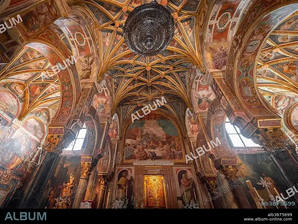 Caption: Tabernacle on a decorated ceiling, ceiling paintings with angels in Tabernacle Chapel, Capilla del Sagrario, Mezquita-Catedral de Córdoba or Cathedral of the Conception of Our Lady, Córdoba, province Cordoba, Andalusia, Spain, Europe