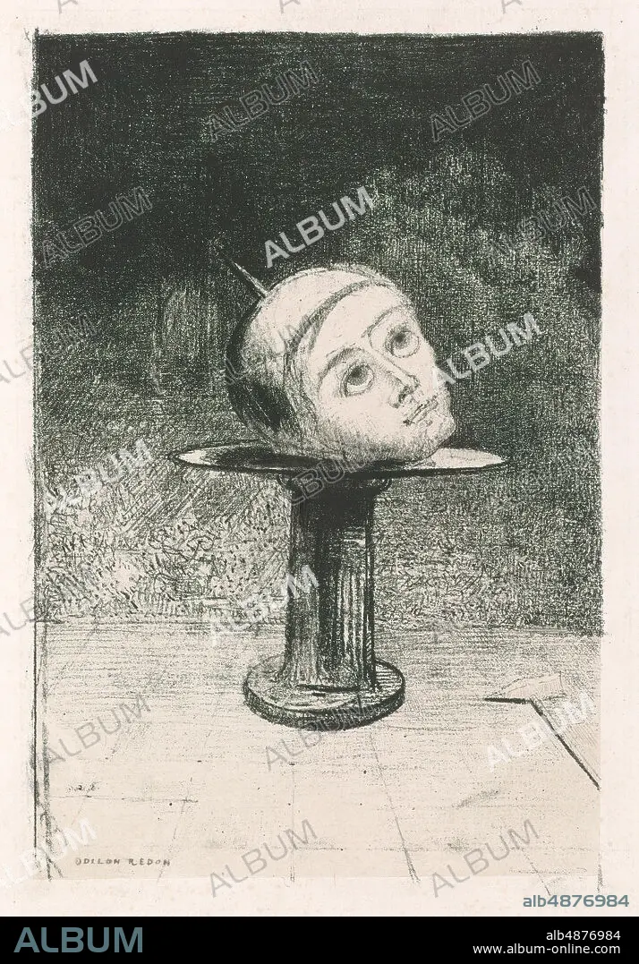 Caption: Odilon Redon, On the Dish [Sur la Coupe], 1879, litho touched w/graphite&black crayon on cream chine applique mounted wove paper, 9 5/8 in. x 6 5/16 in. (24.5 cm x 16.1 cm)