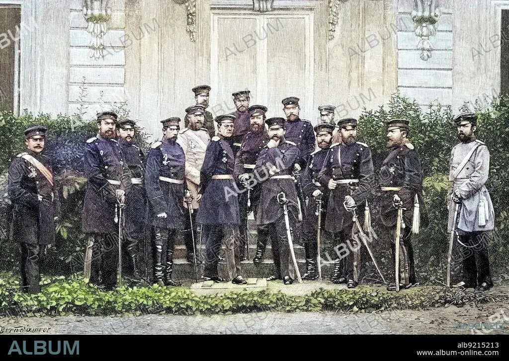 Caption: Military Persons in the Franco-Prussian War 1870, 1871, The German General Staff in Versailles, France, Historical, digitally restored reproduction from a 19th century original, Europe
