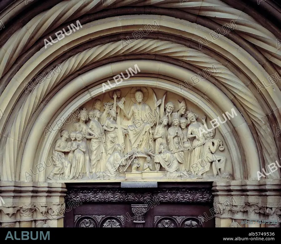 Bamberg, Dom / Bogenfeld des Fürstenportals, Das Jüngste Gericht © Peter Eberts Filmsize: 9 × 12 cm/4 × 5''