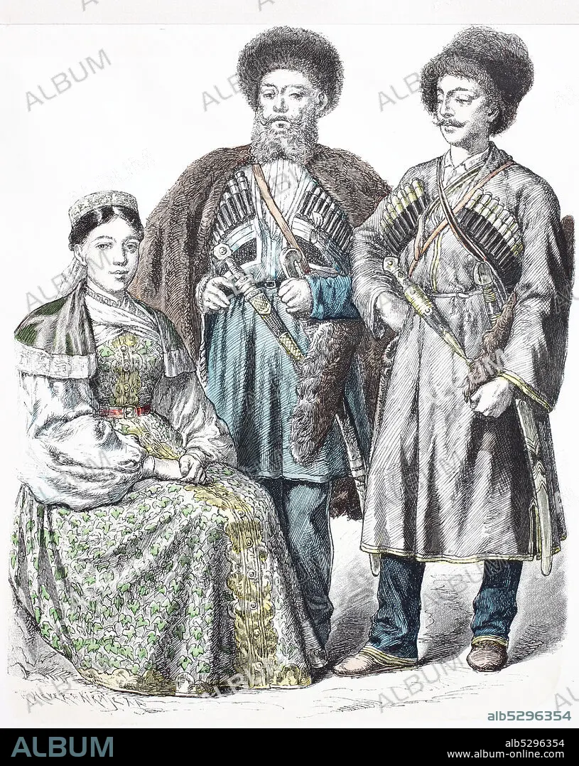 National costume, clothes, history of the costumes, Cossack's woman of the black sea, line Cossack, inhabitant of Kabardah, Kaukasien, the Caucasus, in 1885, Volkstracht, Kleidung, Geschichte der Kostüme, Kosakenfrau vom schwarzen Meer, Linien-Kosak, Bewohner von Kabardah, Kaukasus, 1885.