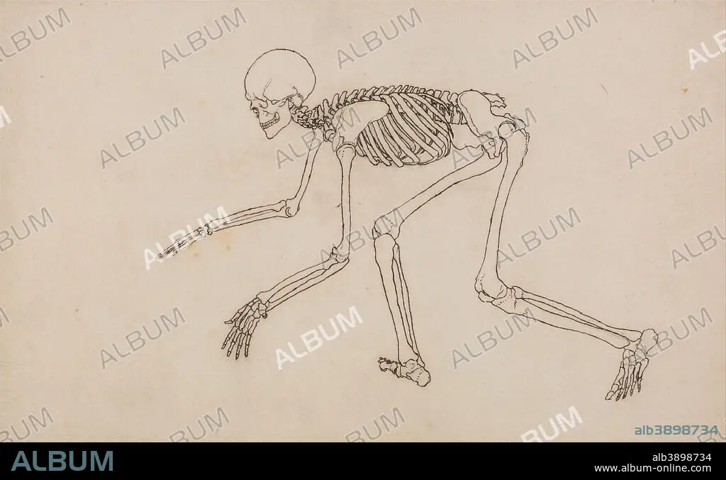 Caption: A Comparative Anatomical Exposition of the Structure of the Human Body with that of a Tiger and a Common Fowl: Human Skeleton, Lateral View. Date/Period: 1795 to 1806. Drawing. Pen with iron gall ink, and graphite on cream, thin, slightly textured, wove paper laid on cream, moderately thick, moderately textured, wove paper. Height: 324 mm (12.75 in); Width: 473 mm (18.62 in).