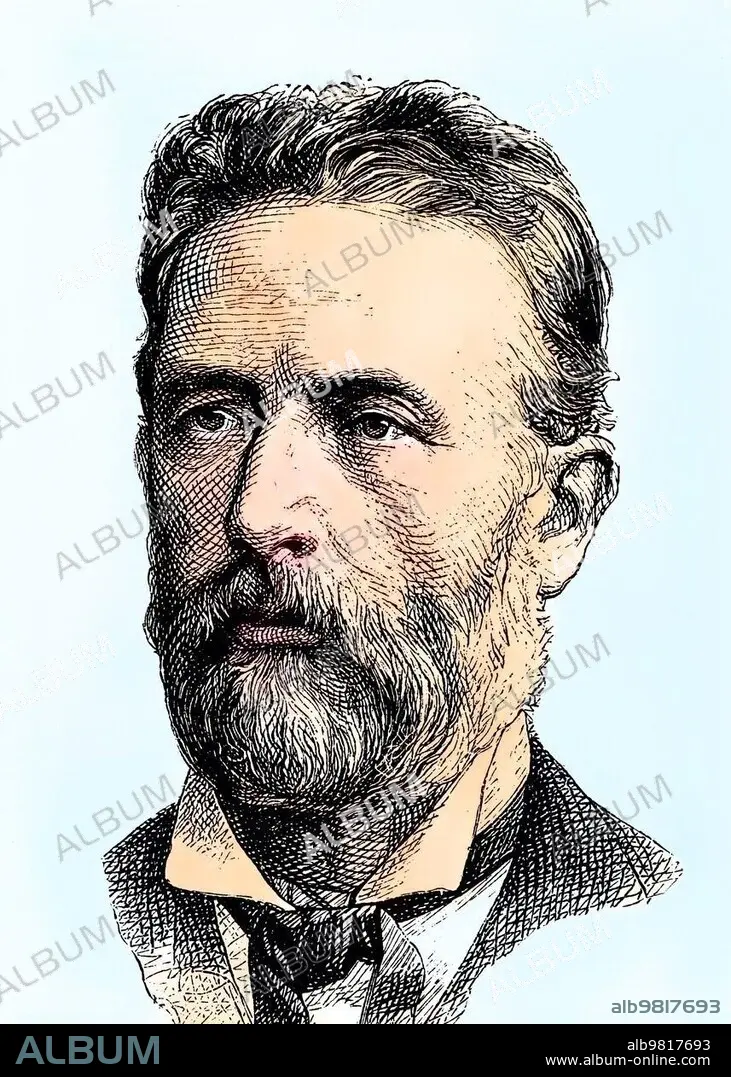 Caption: Philipp Wilhelm Adolf Bastian; 1826-1905; a German ethnologist as well as founding director of the Museum für Völkerkunde in Berlin; Berliner Gesellschaft fuer Erdkunde; historical engraving; ca. 1869; Historic; digitally restored reproduction from a 19th century original; coloured; exact date unknown