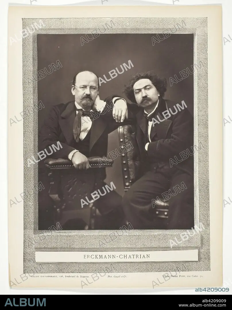 Émile Erckmann (French writer, 1822-1899) and Alexandre Chatrian (French writer, 1826-1890). Pierre Petit; French, 1832-1909. Date: 1871-1876. Dimensions: 23.8 × 19.1 cm (image/paper); 34.2 × 26 cm (mount). Woodburytype, from the periodical "Galerie Contemporaine Littéraire, Artistique" (1876), volume 1. Origin: France.