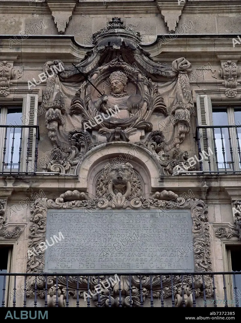 EL PABELLON REAL - DETALLE DE LA FACHADA BARROCA CON MEDALLON,GUIRNALDAS Y PLACA CONMEMORATIVA