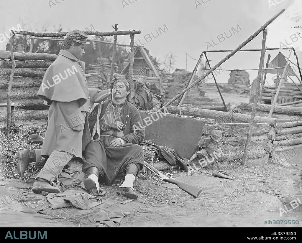 Caption: Scene showing a deserted camp and wounded Zouave soldier during the American Civil War, 1861 -1865. This photo has been digitally restored.