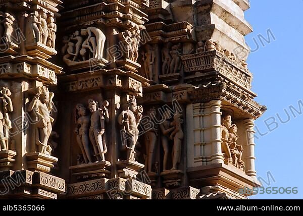 Stone carvings depicting scenes from the Kamasutra, Khajuraho temples, Khajuraho, Madhya Pradesh, India, Asia