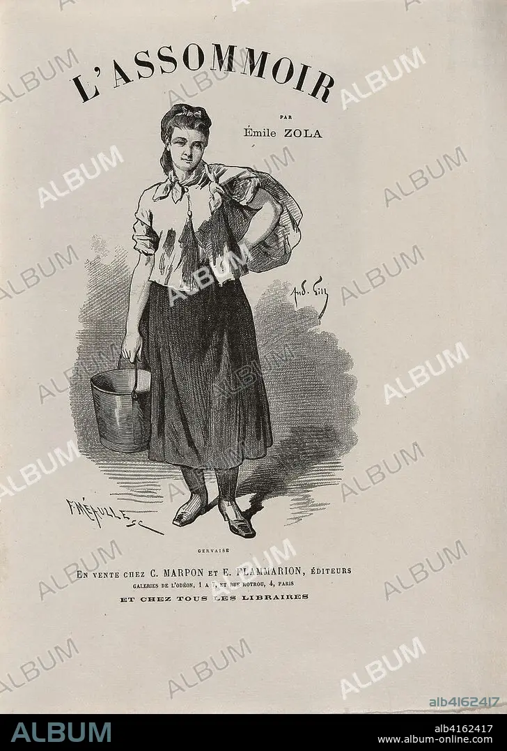 EMILE ZOLA. L'Assommoir. Various artists; written by Émile Zola (French, 1840-1902); published by Marpon and Flammarion (French, established 1875). Date: 1878. Dimensions: 295 × 230 × 55 mm. Book with sixty wood engravings and gillotages in black on ivory laid paper, printed again in black on ivory China paper, tipped in. Origin: France.