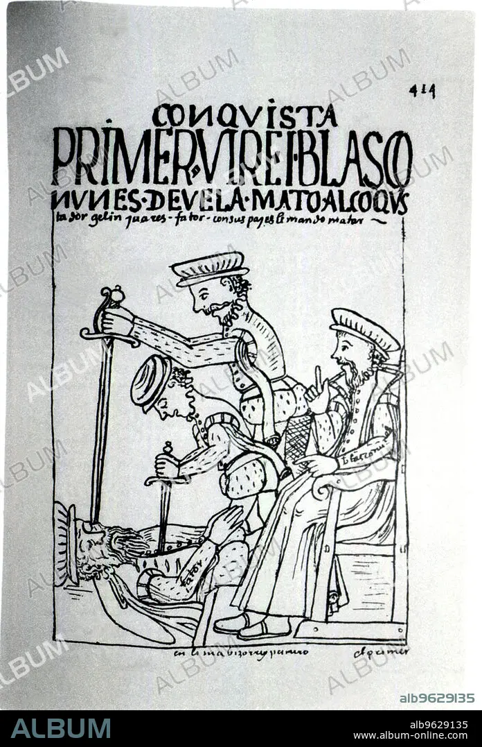 Caption: Death of Blasco Nunez de Vela, Viceroy of Peru, at the hands of Gonzalo Pizarro in 1546, illustration from the book 'Nueva Crónica y Buen Gobierno', story of the Incas.